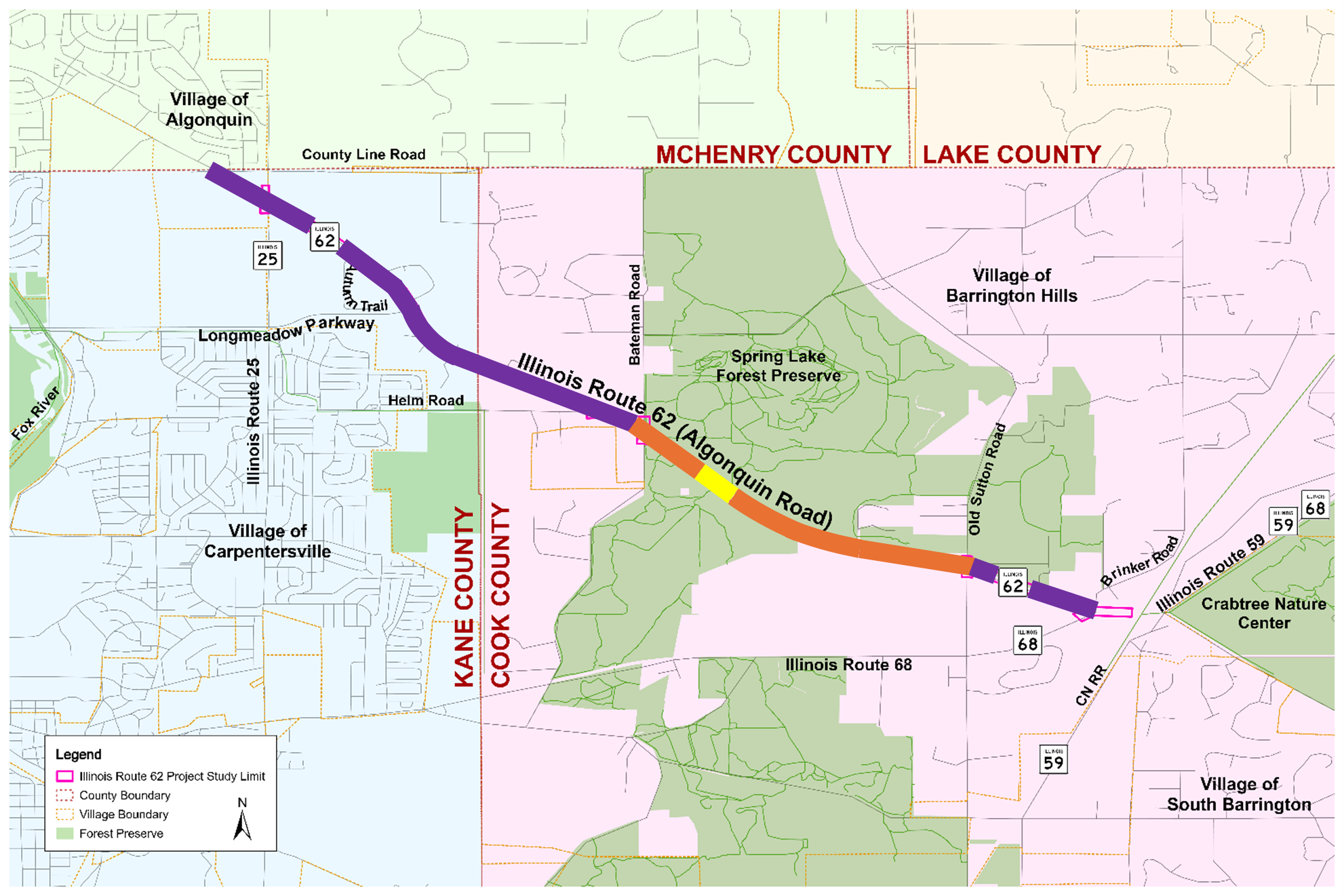 Input from the public, stakeholders, and local agencies has been considered and incorporated over the course of the study. To date, there have been two (2) public meetings and five (5) Community Advisory Group Meetings. IDOT has also met with representatives from the Village of Barrington Hills, Forest Preserves of Cook County (FPCC), U.S. Fish and Wildlife Service (USFWS), and the Illinois State Geological Survey (ISGS) multiple times at key project milestones. Input from these meetings has helped IDOT establish the Purpose and Need, develop the Reasonable Range of Alternatives, identify the Alternatives to be Carried Forward, and select a Preferred Alternative.